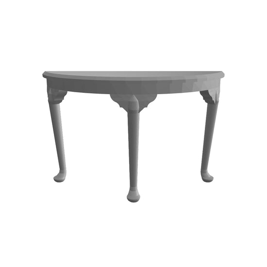 This 3D-printed scale model of a Half Moon Console Table, made from Resin. This detailed half moon table works perfectly for Georgian, Victorian or even modern indoor settings. It is printed in resin.